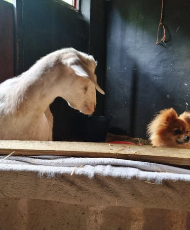 From there, more animals came to Waterford Stables, some purchased and some rescued - Including Bitzy the hornless goat with a stiff leg!